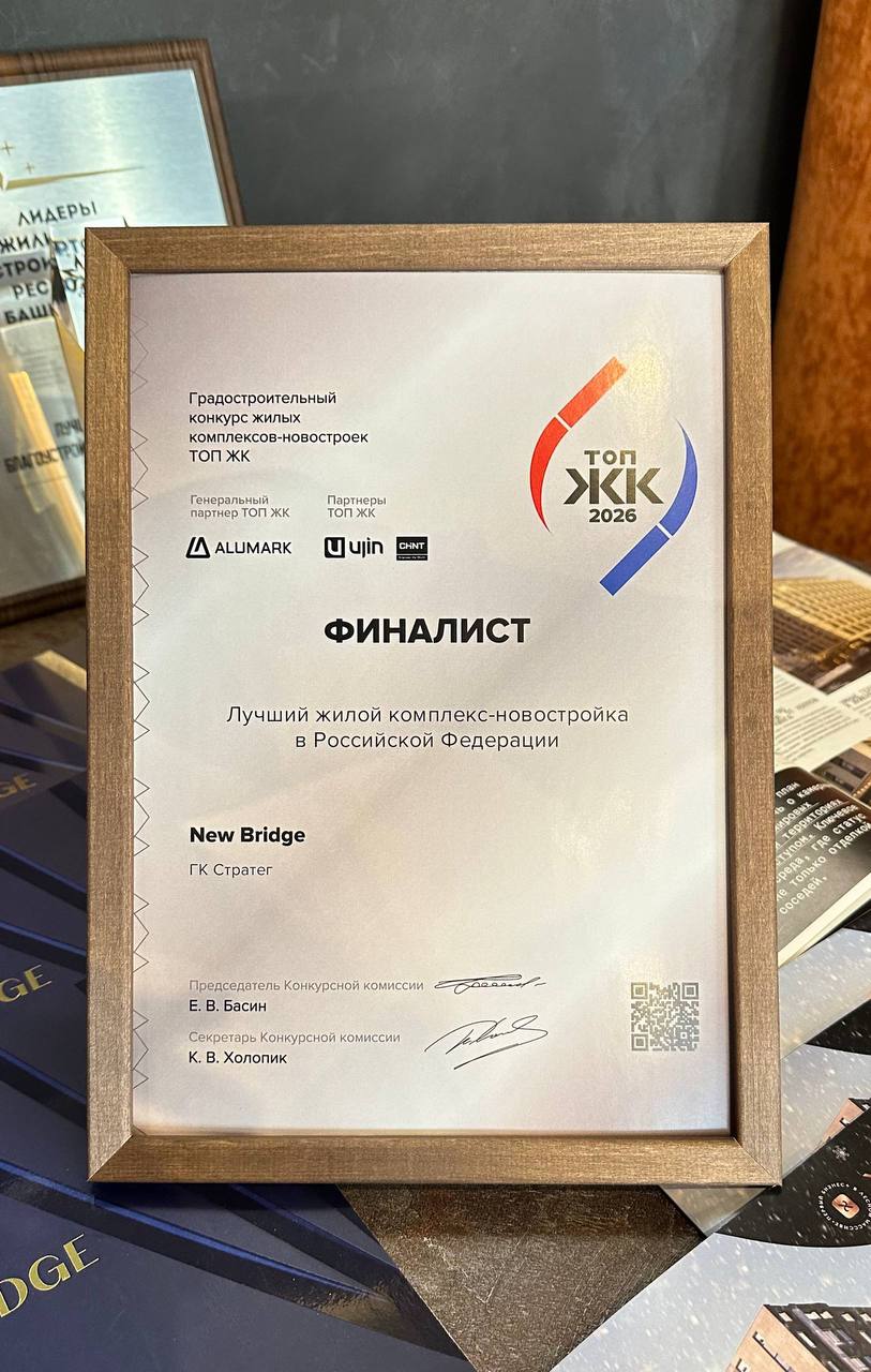 Клубный дом «New Bridge» вошёл в ТОП-10 финалистов Гран-при федерального конкурса ТОП ЖК-2026 в номинации «Лучший жилой комплекс-новостройка России».