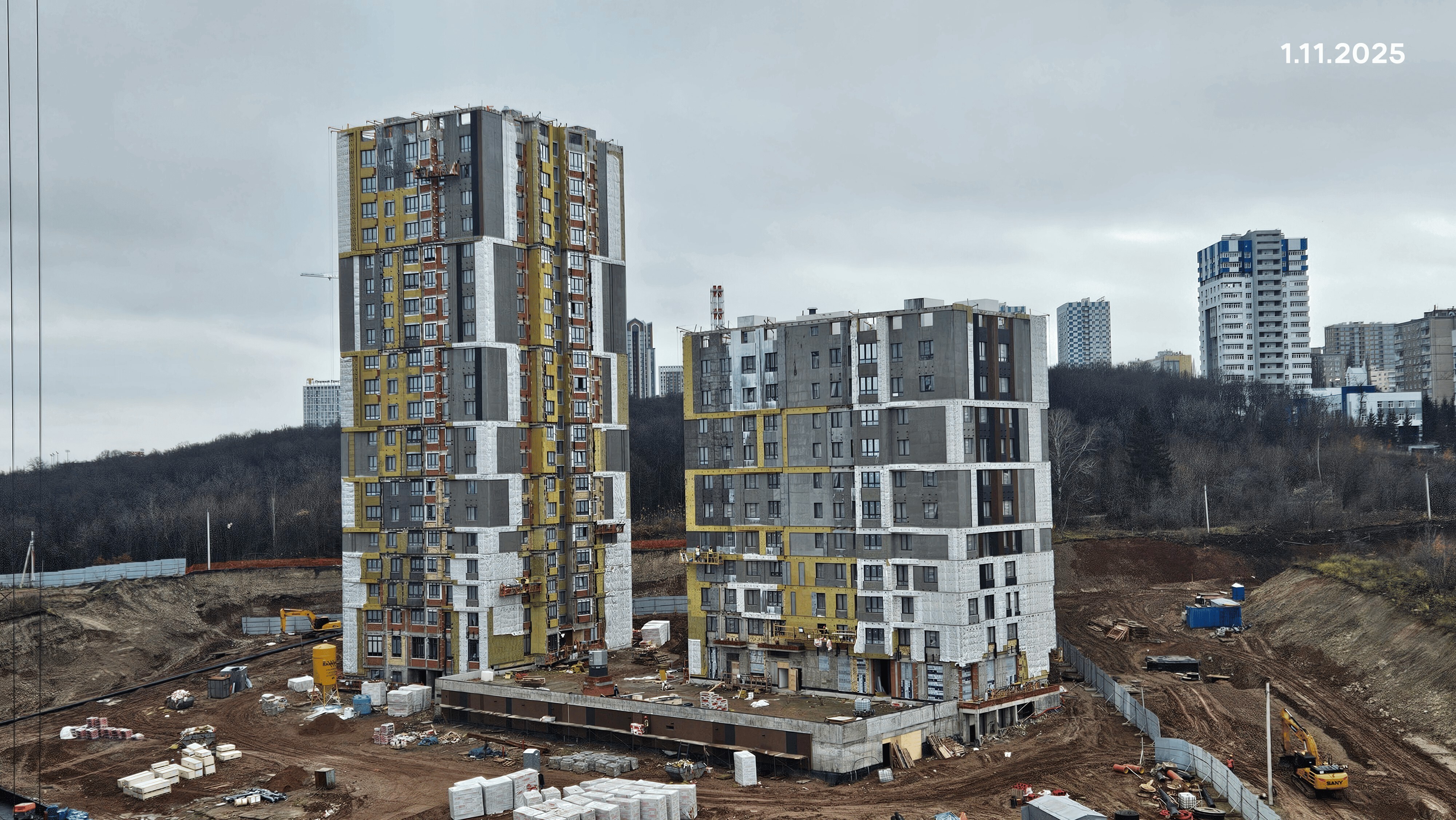 Взмывающие ввысь башни комплекса расположены в зеленом, наполненном жизнью микрорайоне Уфы рядом с ТРЦ «Планета» и станут естественным продолжением лесного массива «Кошкин лес».
